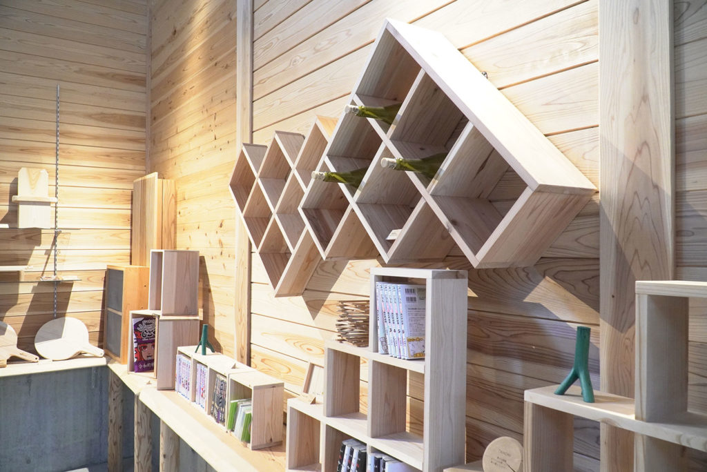 一般の方が実際に木材に触れて体感できる場所をつくり、「こんな家ができる」「こんな木の使い方がある」と伝えることをテーマにしました。DIYスペースも設けて、木に関わるさまざまな体験ができる場として整えています。