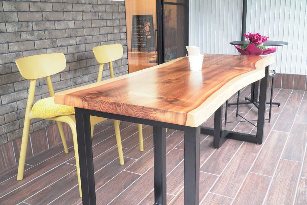 屋外のテラスで使える存在感のあるテーブルを探していました。実際に設置すると、お客様は自然と外のテラス席を選ばれることが多く、空間の魅力を高めるアイテムになっています。