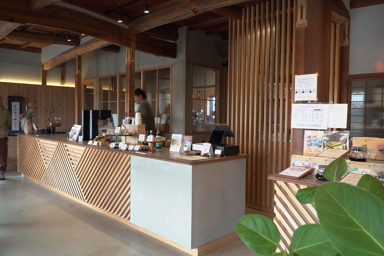 建物そのものを新しくつくり替えるのではなく、これまで積み重ねてきた時間や素材を生かすことを重視。木の質感や構造材を残しながら、現代の店舗としての機能を整えました。