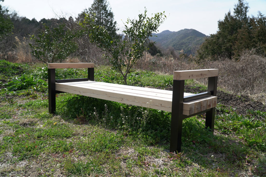 そこでモニター製品として[よりみちベンチ]を導入しました。現在は複数の休憩スペースができ、農園を訪れた人がゆっくり景色を楽しめる場所になっています。