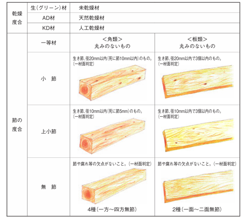 | 造作用製材 | 内装材等仕上げ部分に用いる製材品 見た目が重視される |